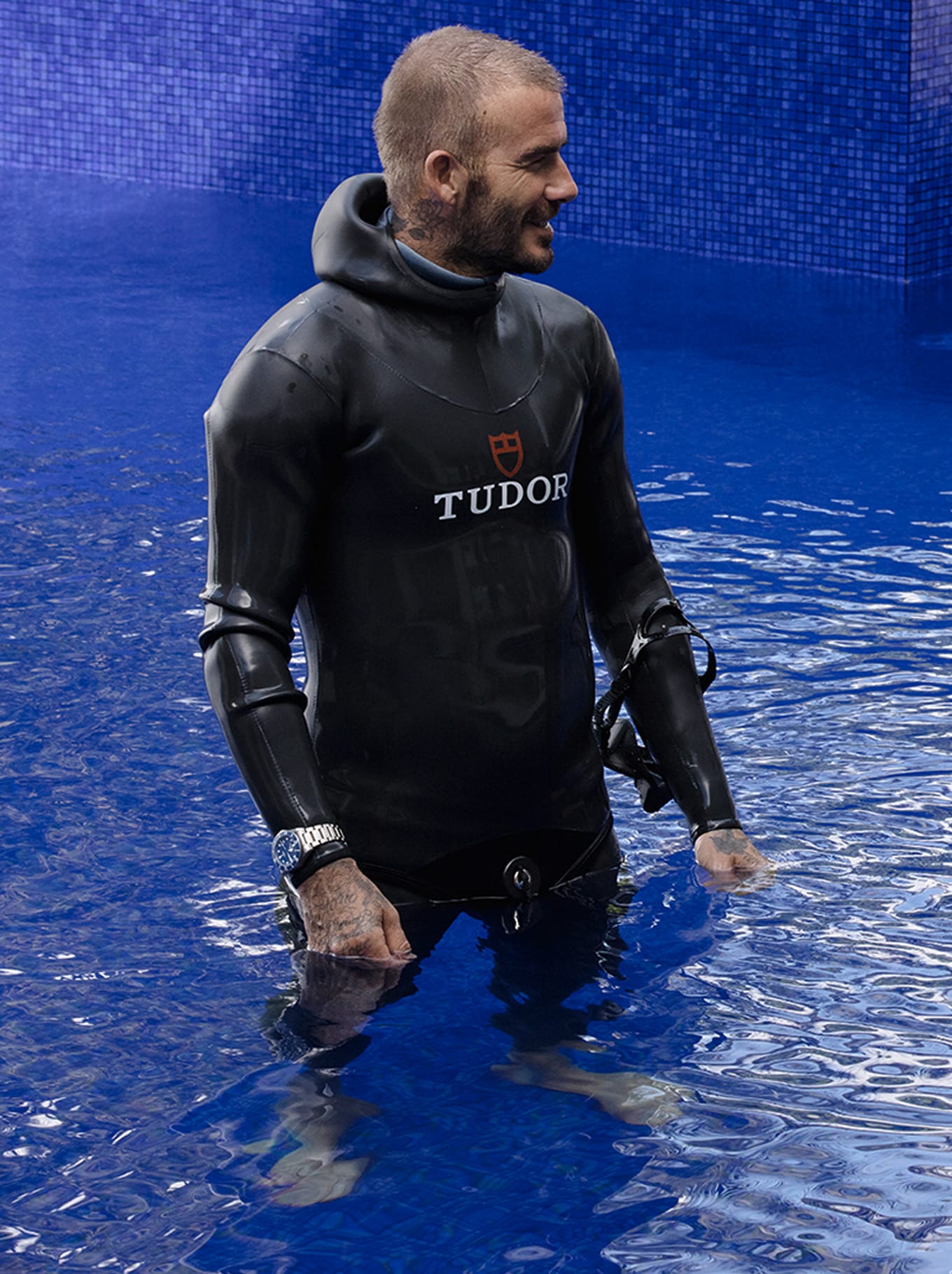 TUDOR invited David Beckham to step out of his comfort zone and experience his first free dive in open water. Under the guidance of French World Champion Free Diver Morgan Bourc’his, the pair ventured to the open sea. Beckham overcomes his fear and completes his first descents with his dive buddy. "These are the moments when you are born to dare. It is about putting yourself in situations where you face challenge, which I like. Most of the time these situations bring out the best in me" Beckham said of his experience.