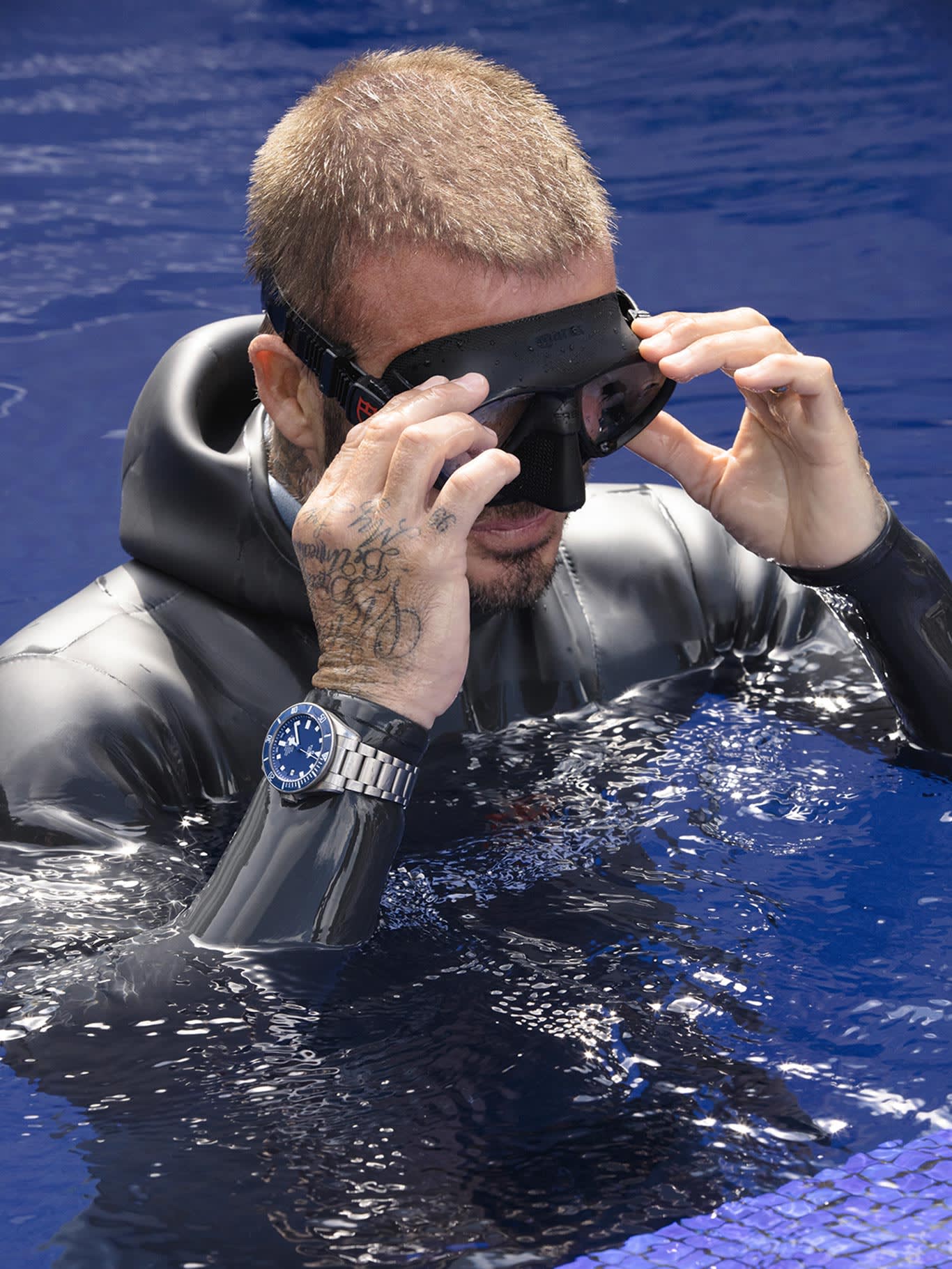 Celebrating TUDOR's #BornToDare spirit, David Beckham joins world champion free diver and friend of TUDOR, Morgan Bourc'his, in open water.
