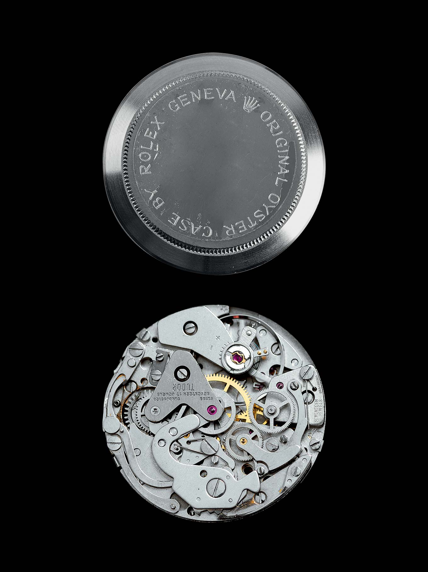 The TUDOR Oysterdate reference 7031/0 is one of the first two chronographs that TUDOR produced and commercialised. Highly valued by collectors in the same way as its sister reference 7032/0, it is different from the latter only in its black Plexiglas bezel with a 500-unit graduated tachymetric scale, which can be used to calculate hourly average speeds between two points. Its 39 mm case is waterproof to a depth of 50 metres and houses the manually-wound mechanical Valjoux 7734 movement with a power reserve of more than 45 hours. The case back is engraved “Original Oyster Case by Rolex Geneva”. Its steel bracelet is a Rolex Oyster-type bracelet, reference 7836, with folding links. Located at 3 and 9 o’clock, the two counters of its famous grey and black dial with distinctive hour markers indicate, respectively, the seconds of the permanent display and the elapsed minutes of the chronograph function.