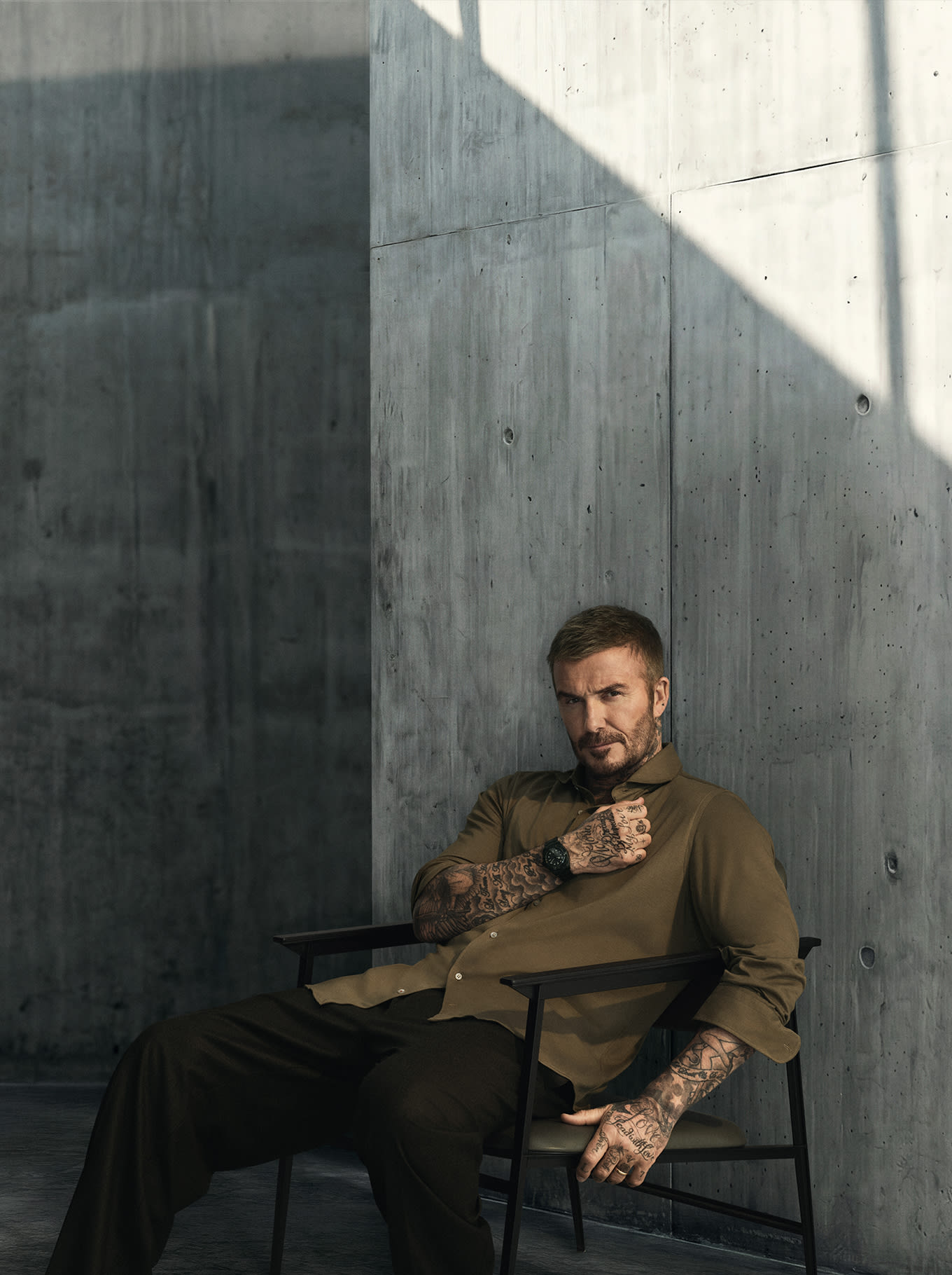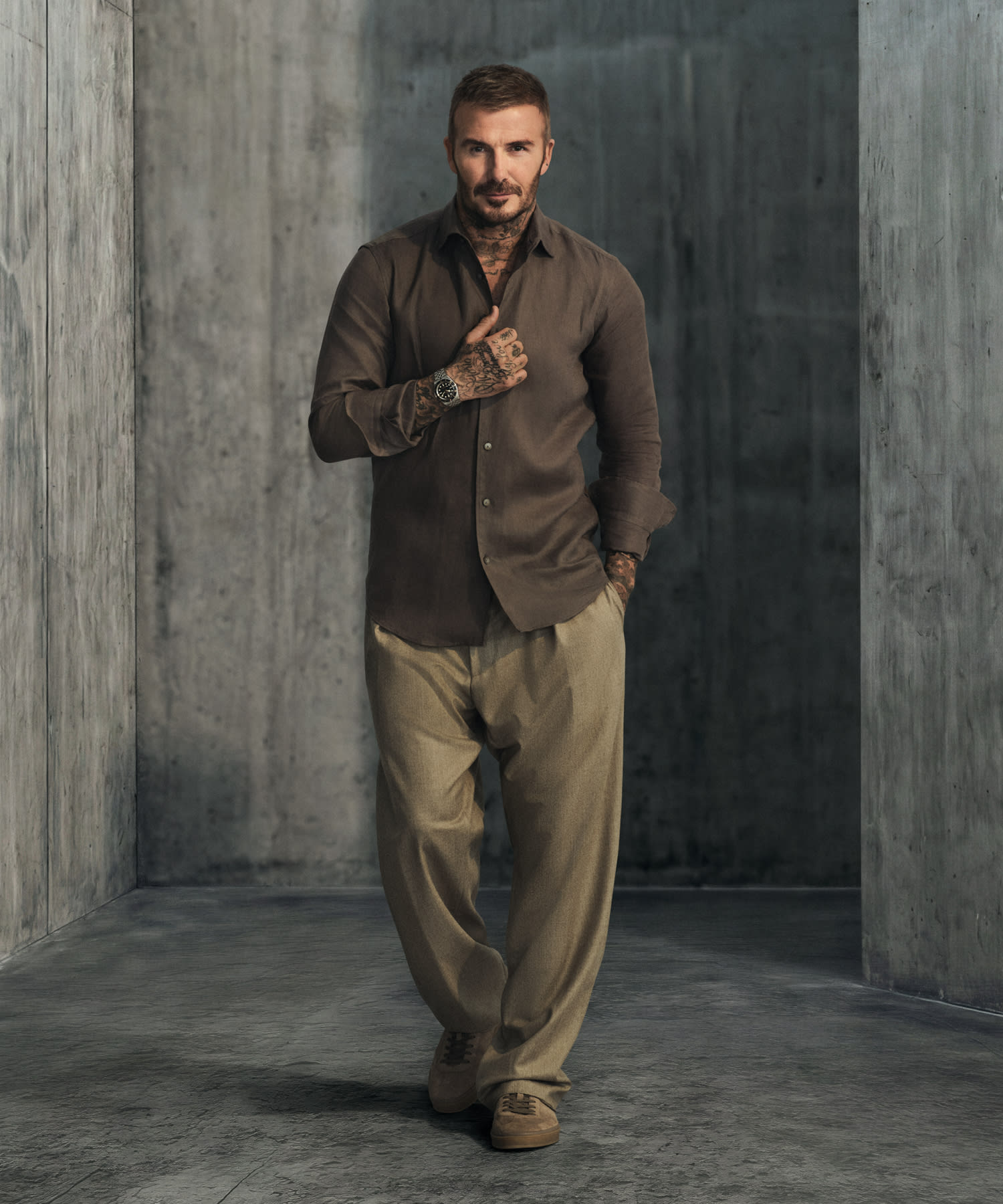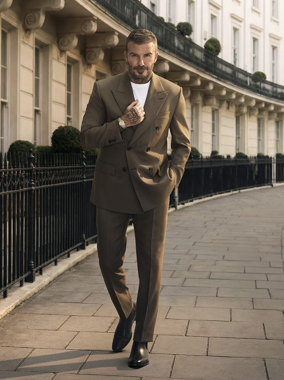 David Beckham wears the Black Bay Chrono in steel, the sports chronograph with contrasting sub-counters, as well as the Black Bay Bronze, a 43 mm divers' watch inspired by the brand's history. He also wears the TUDOR Royal, the epitome of versatile sport-chic with its integrated bracelet, notched bezel and automatic movement.