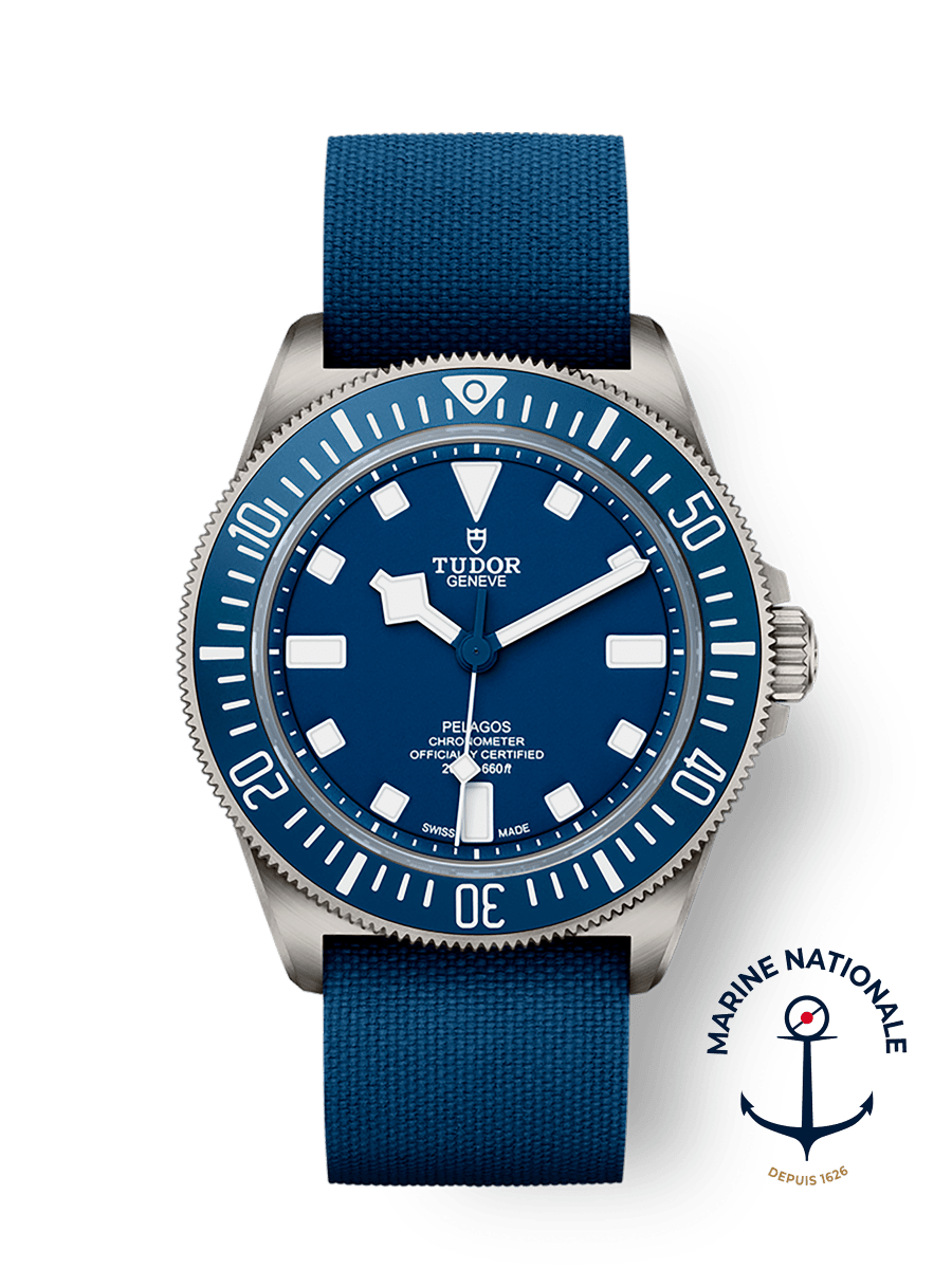 Developed in conjunction with the French Navy's combat swimmers, the Pelagos FXD model is based on a set of specifications that are as precise as they are demanding. For this reason, it includes many functional features that are new to TUDOR, such as its fixed strap bars that are machined into the main body of the 42 mm titanium case for increased robustness and reliability.
