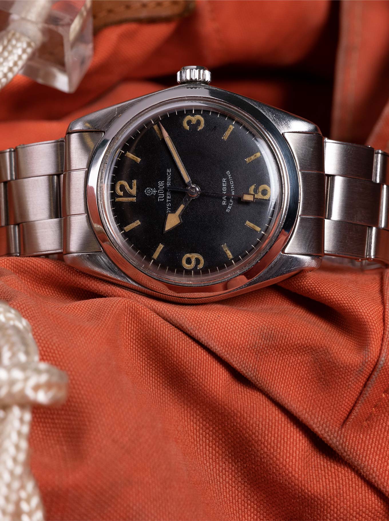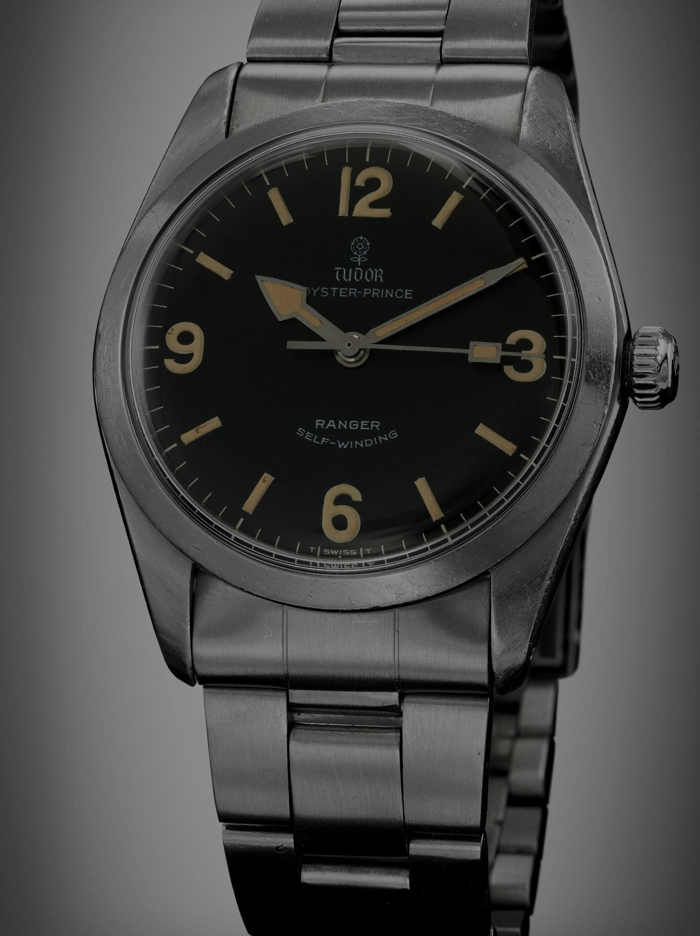 帝舵Oyster Prince Ranger于1960年代问世,并于1969年首次出现在产品目录中。这款腕表于1988年前一直可见于产品目录中。所示的腕表(型号 7995/0)制作于1967年,采用34毫米防水钢表壳。哑光黑色表盘有玫瑰标志和夜光长方形钟点标记,3、6、9和12点位置有夜光阿拉伯数字。外形独特的指针也涂上夜光物料。自动上链机芯为ETA 2483型号机芯,摆陀上有“TUDOR AUTO-PRINCE”(帝舵表自动王子)字样。旋入式表壳底盖内侧刻有“MONTRES TUDOR S.A. GENEVA SWITZERLAND PATENTED”(瑞士日内瓦帝舵表专利)字样,外侧有“ORIGINAL OYSTER CASE BY ROLEX GENEVA”(日内瓦劳力士制造原装蚝式表壳)字样。蚝式钢表带(型号7835)有摺叠链节和刻有劳力士标志的表带扣。