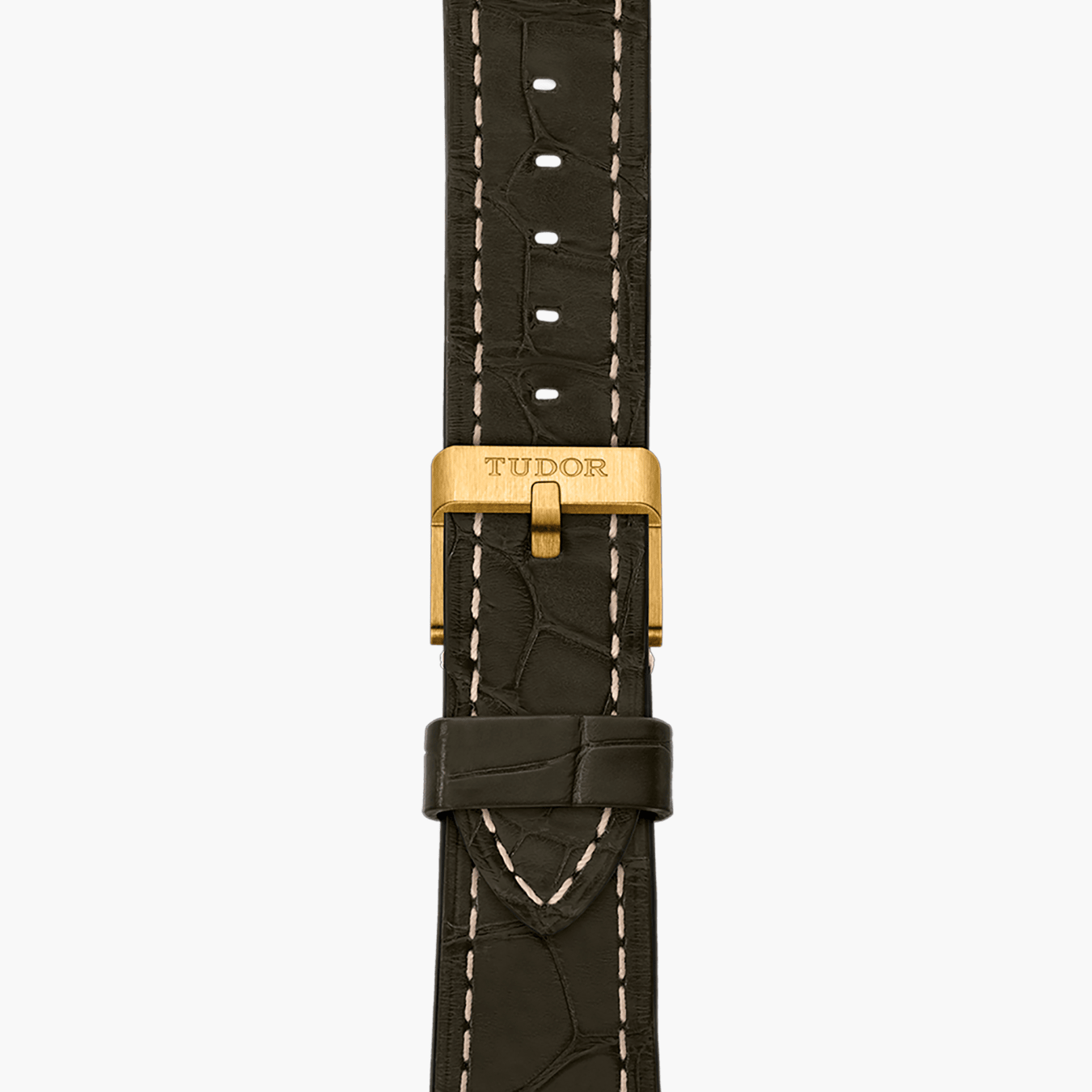 圆拱形深棕色鳄鱼皮表带,配18K黄金带扣